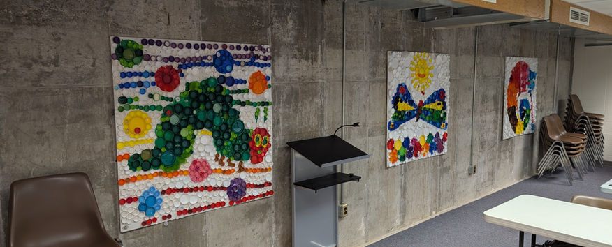 Wall in the program room was previously repaired following water infiltration but remains unfinished in case of future leaks. This impacts aesthetics, may reduce durability, and could allow future moisture issues if not properly completed.